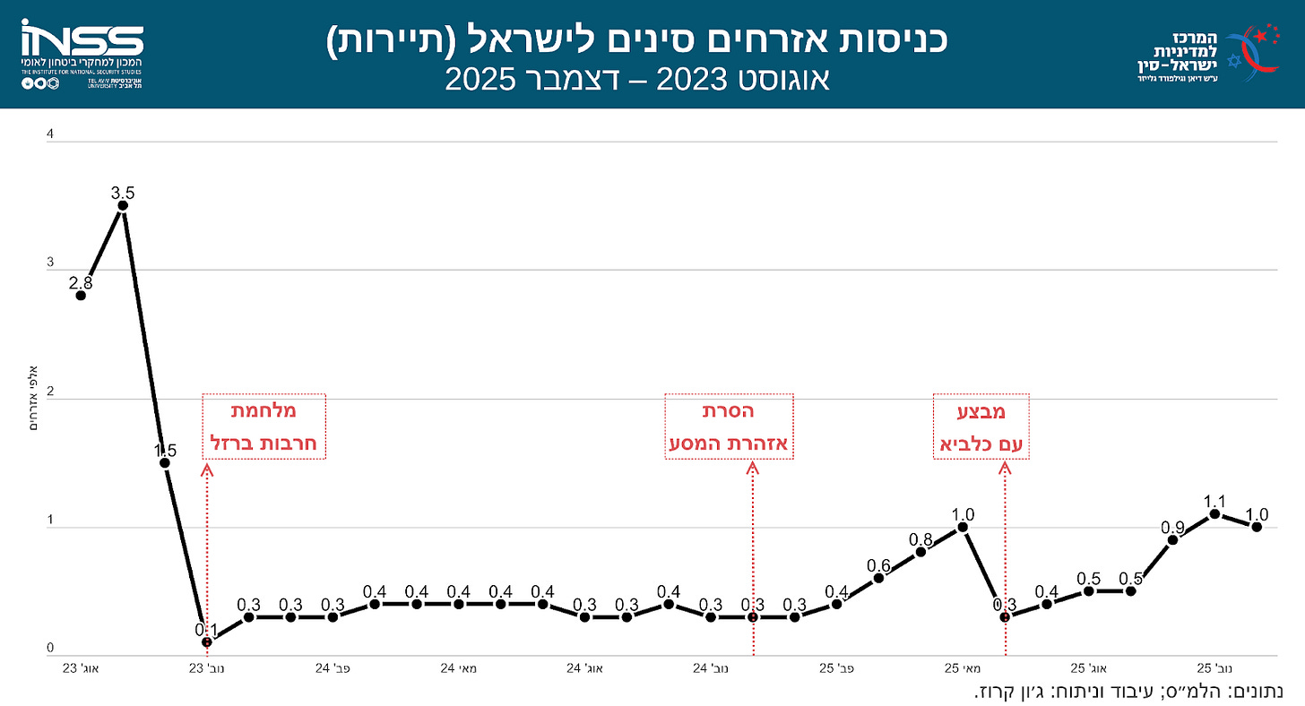 דובר שגרירות סין בישראל: השמועות כי סין אוסרת על ישראלים להיכנס לשטחה לא נכונות; דווקא מקלים על מתן ויזות; ב-2025, מספר האזרחים הישראלים שהגישו בקשה לאשרות סיניות גדל ב-44% בהשוואה לשנה שעברה.